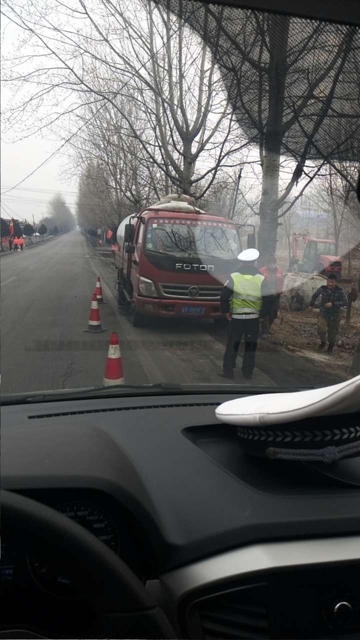 上党区交警大队赵村执法站巡逻中,清理路边违章停车