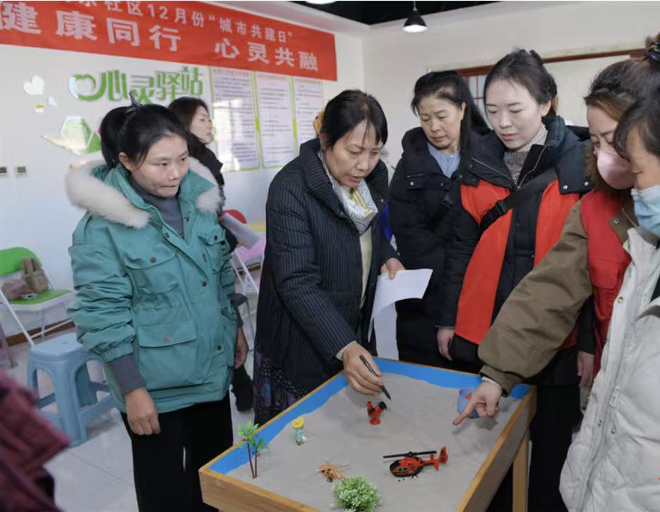 活动由区发改科技局,区融媒体中心联合社区共同举办,特邀专业心理咨询师为辖区居民,共建单位工作人员及计生特殊家庭人员提供心理健康辅导。现场通过互动小游戏,心理绘画,沙盘模拟等趣味形式,引导参与者倾诉心声,释放压力。