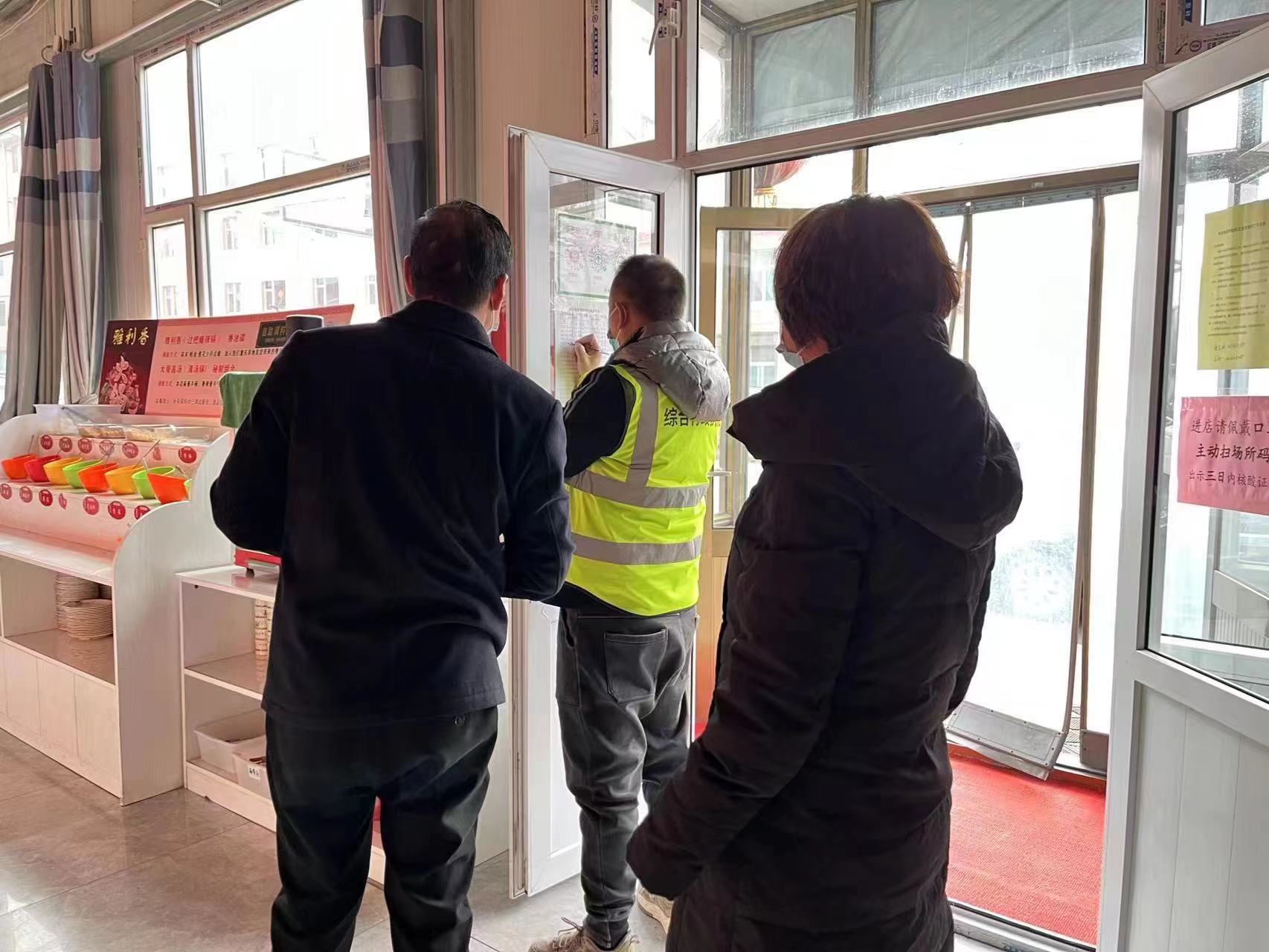 11月28日,西火镇综合行政执法大队对辖区内重点营业场所进行疫情防控巡查,巡查内容主要为营业场所工作人员是否常态化核酸检测,场所码是否张贴,出入人员台帐有无规范登记等。