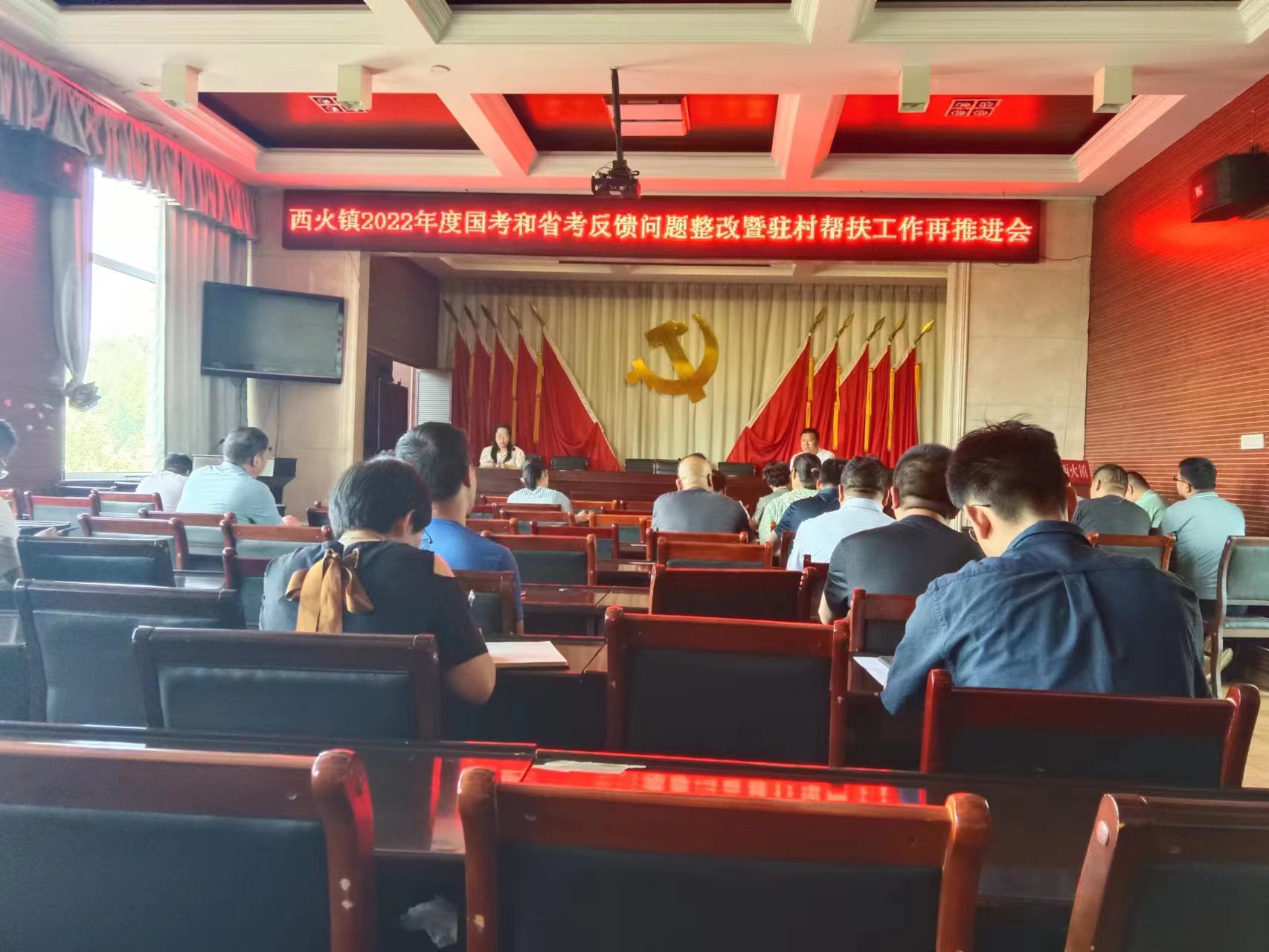 6月27日,西火镇召开2022年度国考和省考反馈问题整改暨驻村扶贫工作再推进会,镇长李方主持主议,副镇长都娟安排部署下阶段工作。