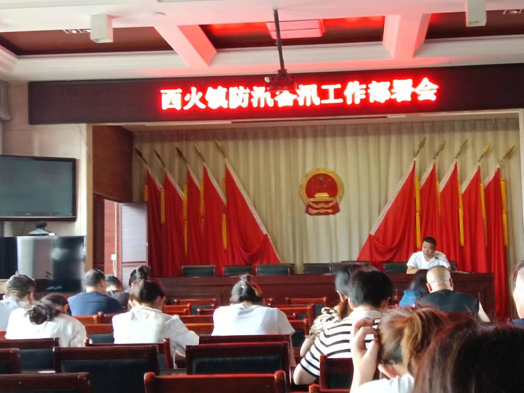 西火镇召开防汛备汛工作部署会,镇长李方主持。