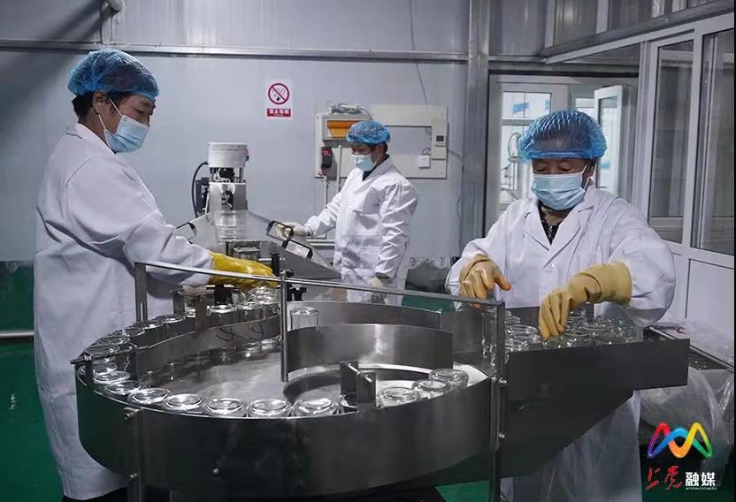 洗瓶、装瓶、密封、打包……在西陕村的韭花酱加工厂,几位穿着工作服的村民正在加工韭花酱的流水线上忙碌着。