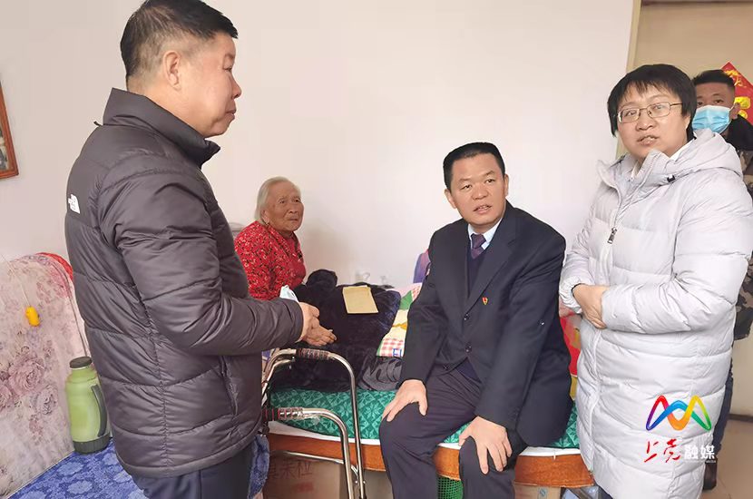 1月26日,区委常委、组织部长张东文,区政协副主席刘志安在荫城镇石炭峪村,走访慰问新中国成立前老党员田贵香。