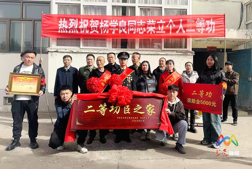 3月24日,区委副书记、统战部部长张东文,区委常委、人武部政委贾志军,来到荫城镇中村,为现役立功军人杨学良家庭送上立功喜报,杨学良因在部队工作成绩突出,荣立二等功。