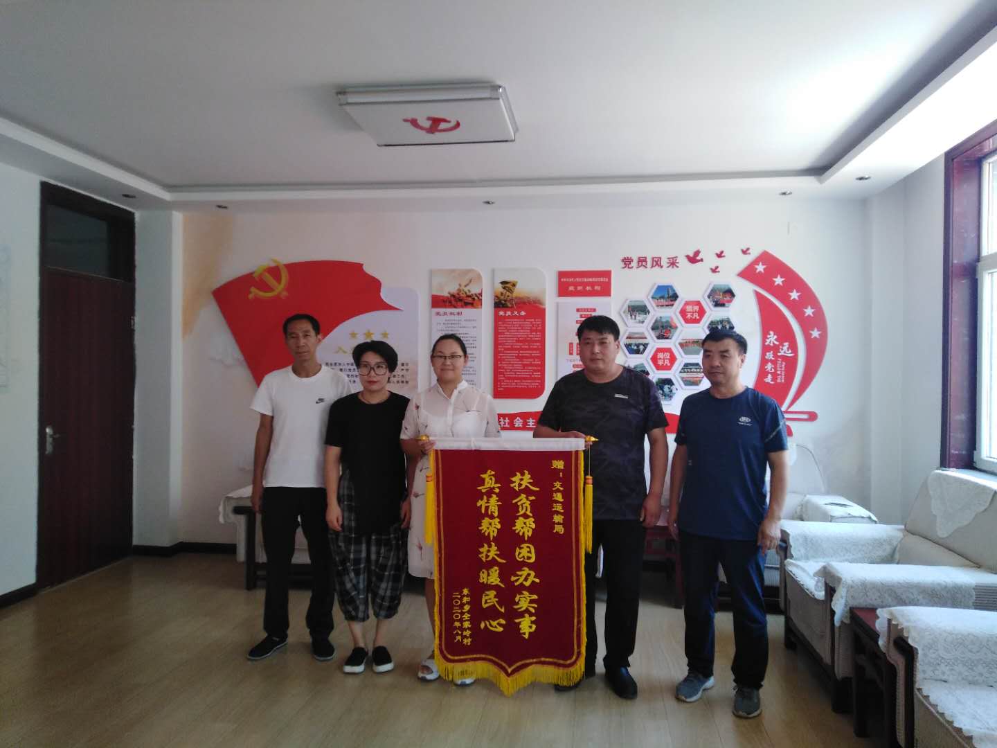 2020年8月10日,我乡仝家岭支、村两委为区交通运输管理局送去锦旗,感谢区交通运输管理局对仝家岭村的帮扶。