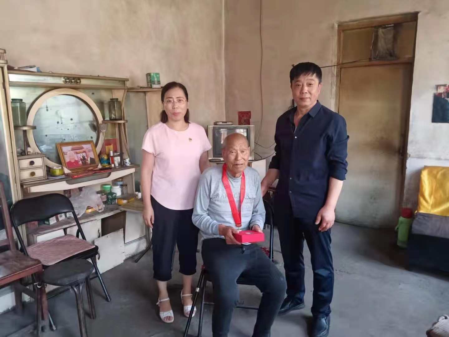 2021年6月28日,苏店镇各包村领导与各村支部书记上门慰问“光荣在党50年”党员,并为其颁发奖章。