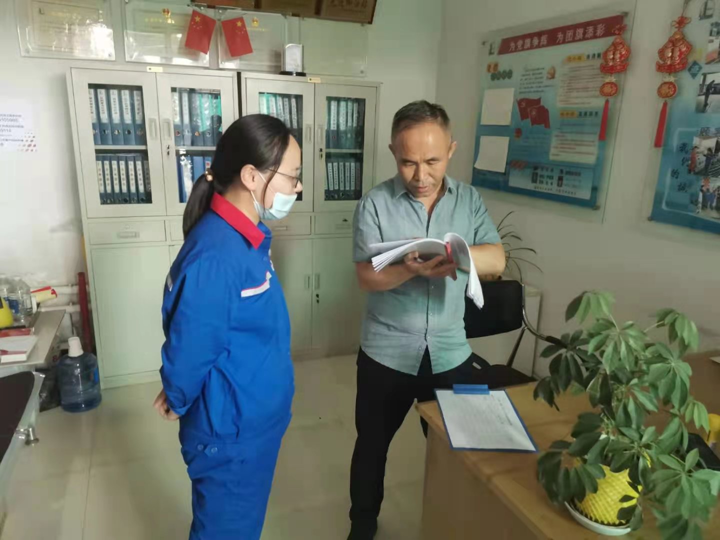 2021年7月3日,苏店镇党委委员、武装部长郭光明对镇内中石化原家庄加油站进行安全生产检查。