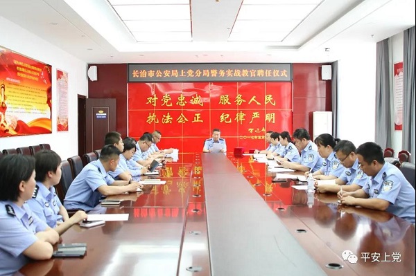 6月24日下午,长治市公安局上党分局举行警务实战教官聘任仪式。分局党委副书记、政委张军红出席仪式并讲话,分局党委委员、政治处主任贾勇主持仪式。