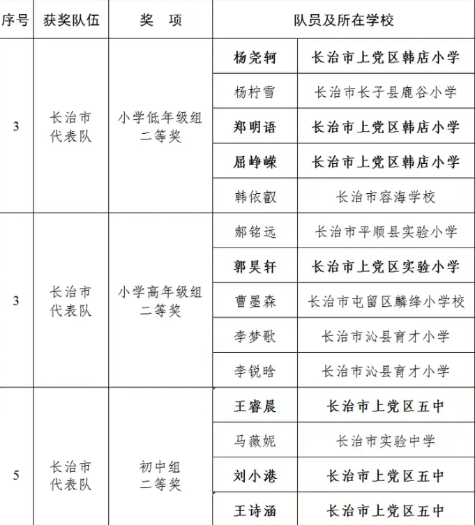 经区、市遴选的我区参赛队员,在三个组别中均取得二等奖的优异成绩。特向获奖学生、辅导教师及学校表示热烈的祝贺!希望再接再厉,再创佳绩!