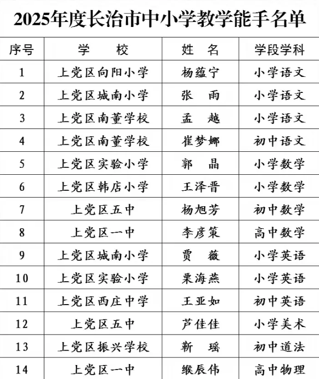 | 标题:我区多名教师荣获“2025年度长治市中小学教学能手”称号 | |