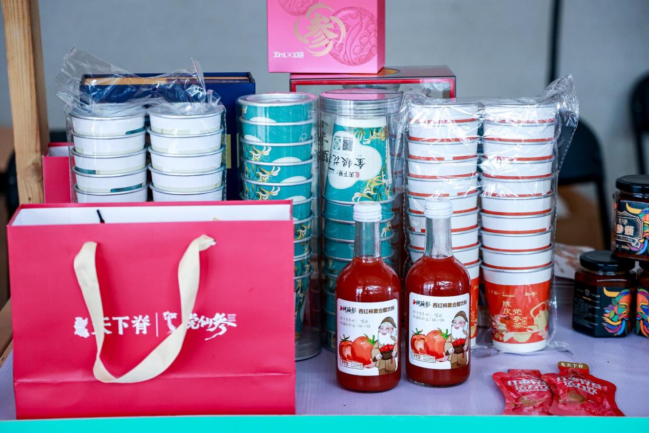 作为上党区特色产业的 “代言人”,上党区乡村e镇公共服务中心此次携带了诸多精品。除了 “上党天下脊” 系列产品 —— 红枣党参活力饮、金银花杯茶、西红柿复合醋饮外,还精心挑选了一批涵盖农副产品、深加工食品及特色衍生农产品等领域的优质农产品:老李头罐头、党参酱、鹿鸣酒、红绿彩酒等特色产品。这些产品兼具地域特色与市场潜力,充分展现了上党区农产品的独特魅力。