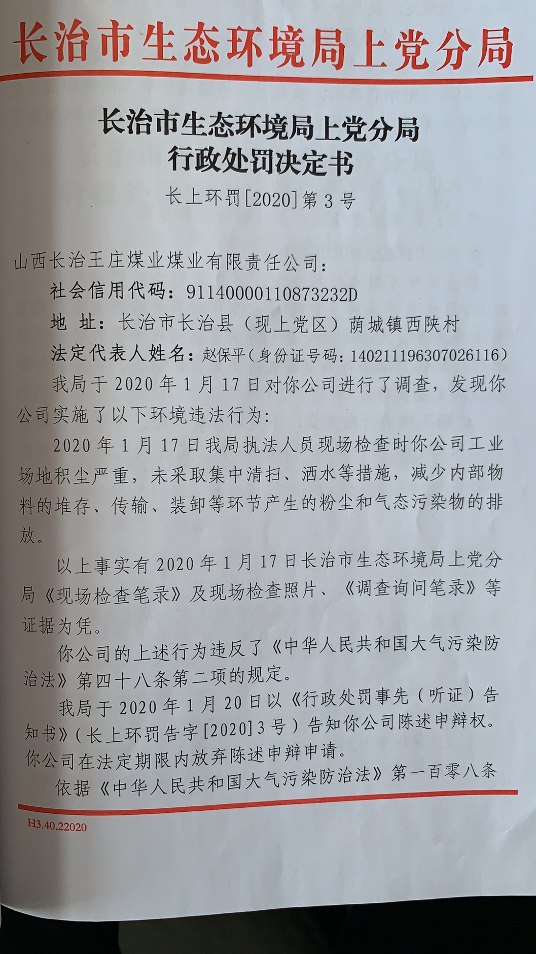 详见附件:长上环罚【2020】3号A.jpg、长上环罚【2020】3号B.jpg