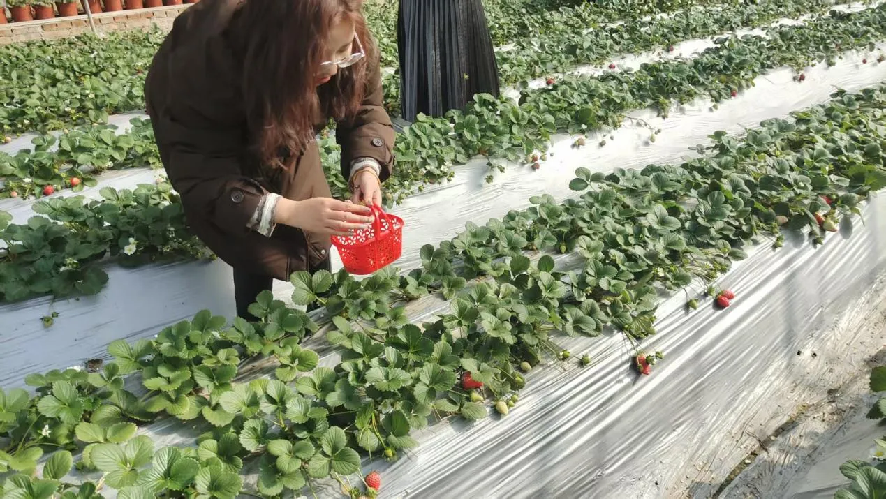 走进田间采摘草莓,欢声笑语不断,在轻松惬意的时光里放松心情、亲近自然。