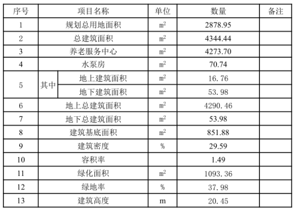 本项目位于长治市上党区中心城区,原汽车站旧址,西侧为光明路,总用地面积约2878.95平方米(合4.32亩)。 项目西侧紧邻光明路,交通便捷。本项目拟建建筑主要包括养老服务中心一栋,建筑面积为4273.70㎡;水泵房一处,建筑面积为70.74㎡,地上建筑面积为16.76㎡。