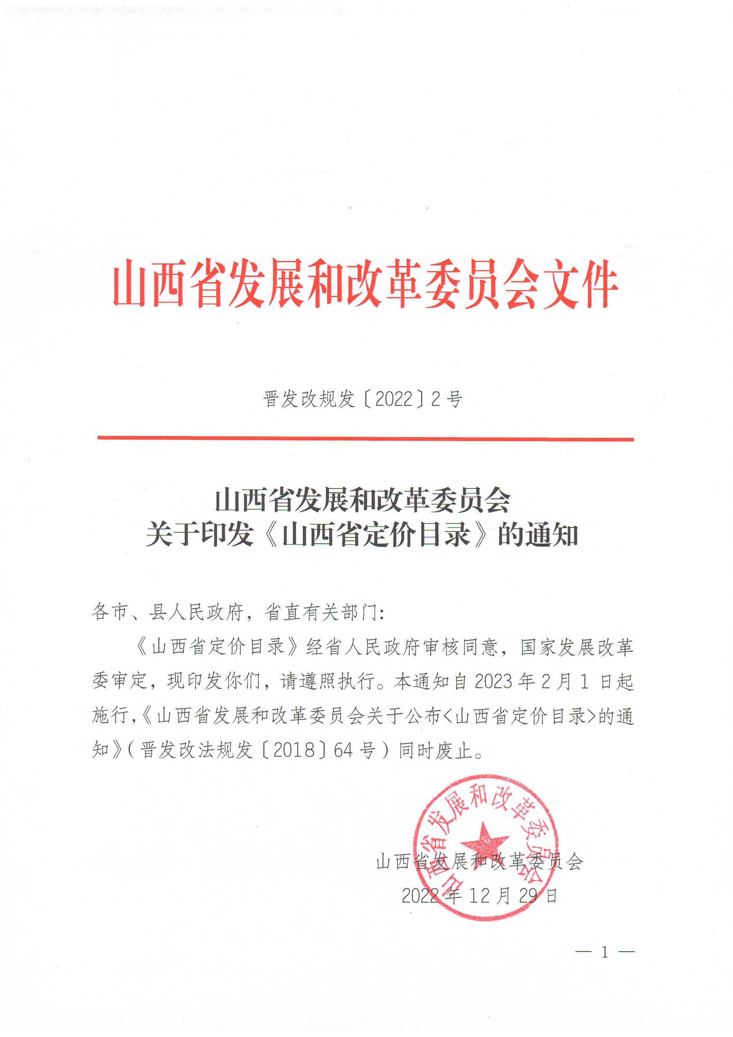 山西省发展和改革委员会关于印发《山西省定价目录》的通知(晋发改规发20222号).pdf
