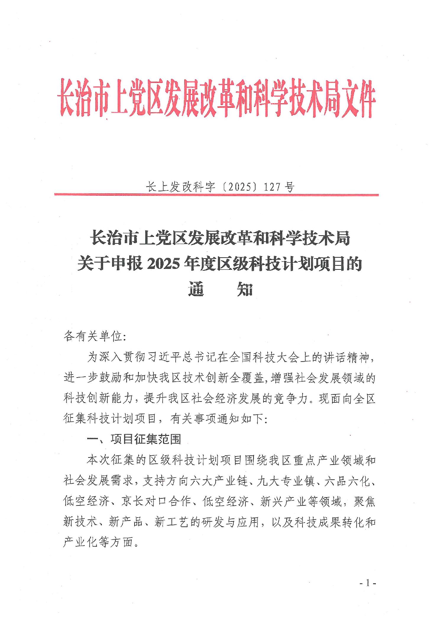 上党区科技专项计划项目申报书.doc