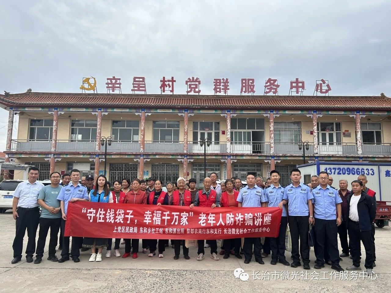 在上党区民政局的指导下,东和乡社工站于2023年9月20日,携手东和乡派出所、黎都农商银行东和支行在辛呈村开展了“守住钱袋子,幸福千万家”老年人防诈骗讲座。