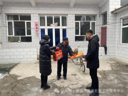 春节将至,岁寒情深,在新春佳节即将来临之际,在上党区民政局的指导下,我中心于2024年2月1日,苏店镇、八义镇社工站组织开展走访慰问活动,为80岁以上的老人、困难残疾人送去了节日的祝福和问候。