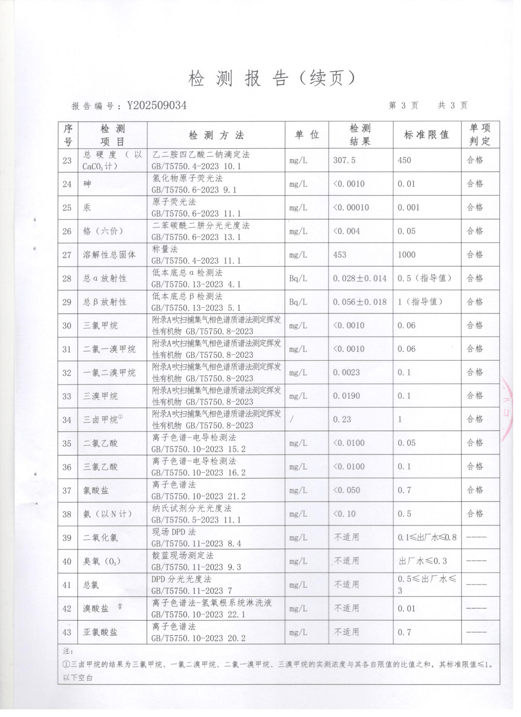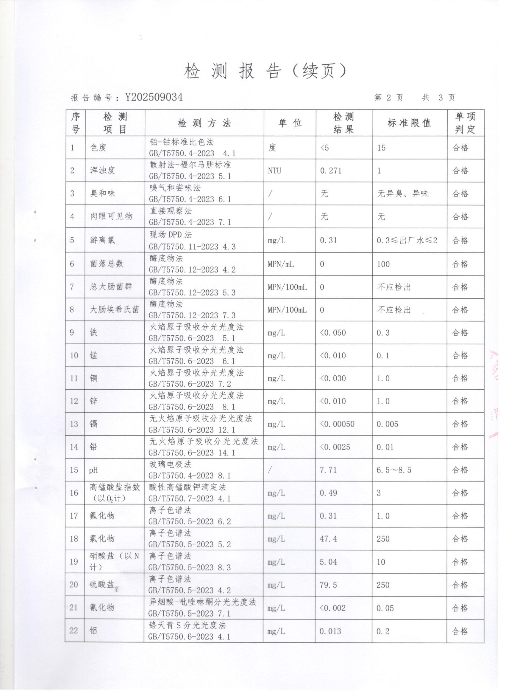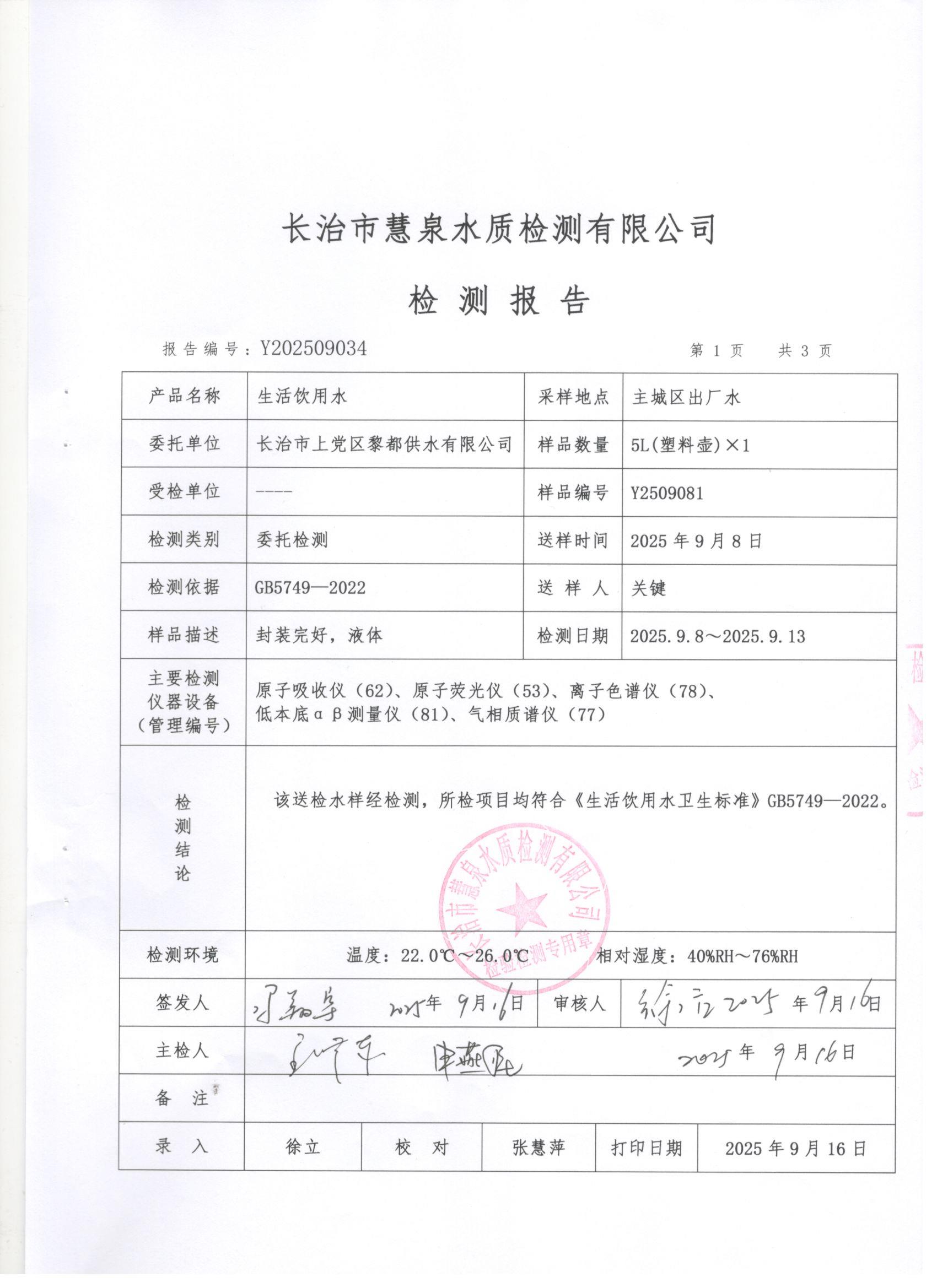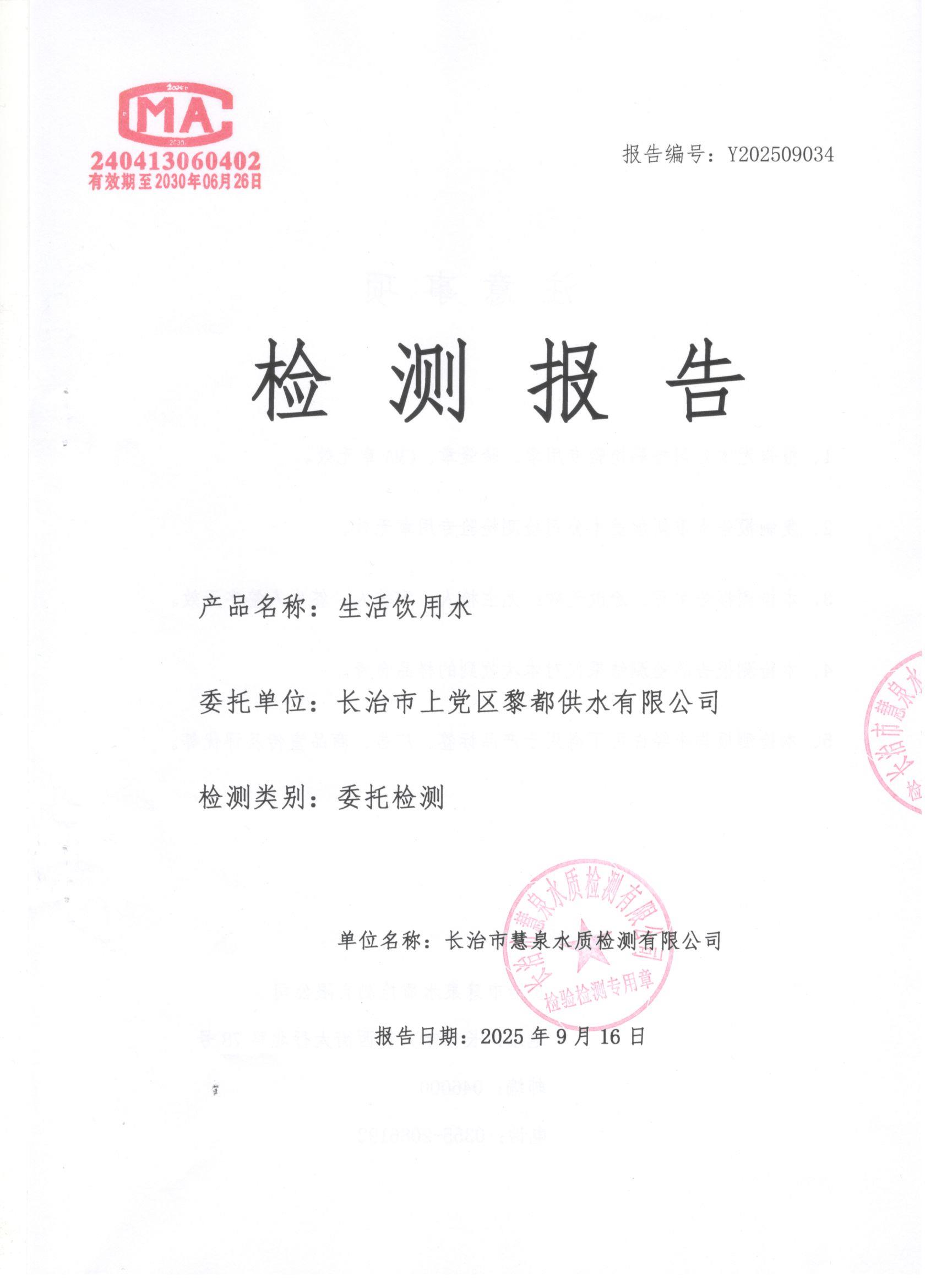 现将上党区2025年9月份水质检测报告公告如下: