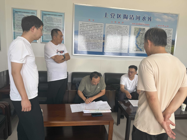 2025年7月16日,长治市水利局副局长程飞一行深入我区陶清河水库、北宋水库检查防汛工作,到荫城镇走访农村供水水费收缴情况。
