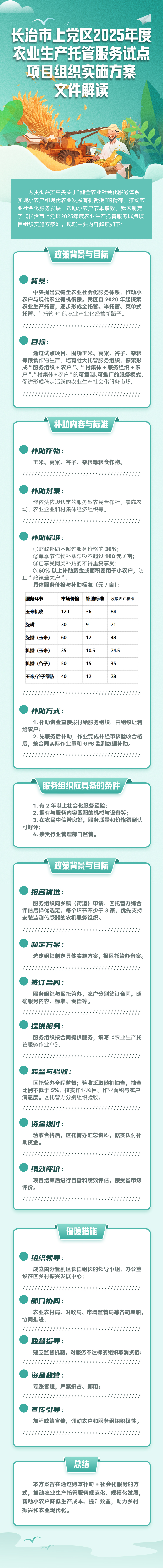 原文链接:长治市上党区人民政府办公室关于印发长治市上党区2025年农业生产托管服务试点工作组织实施方案的 通知