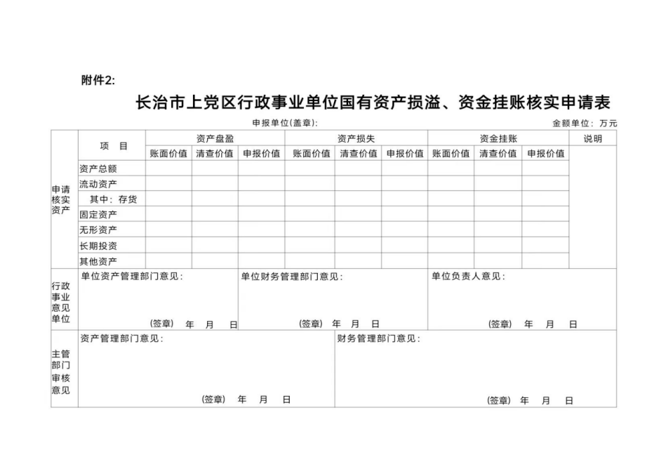 2.长治市上党区行政事业单位国有资产损益、资金挂账核实申请表