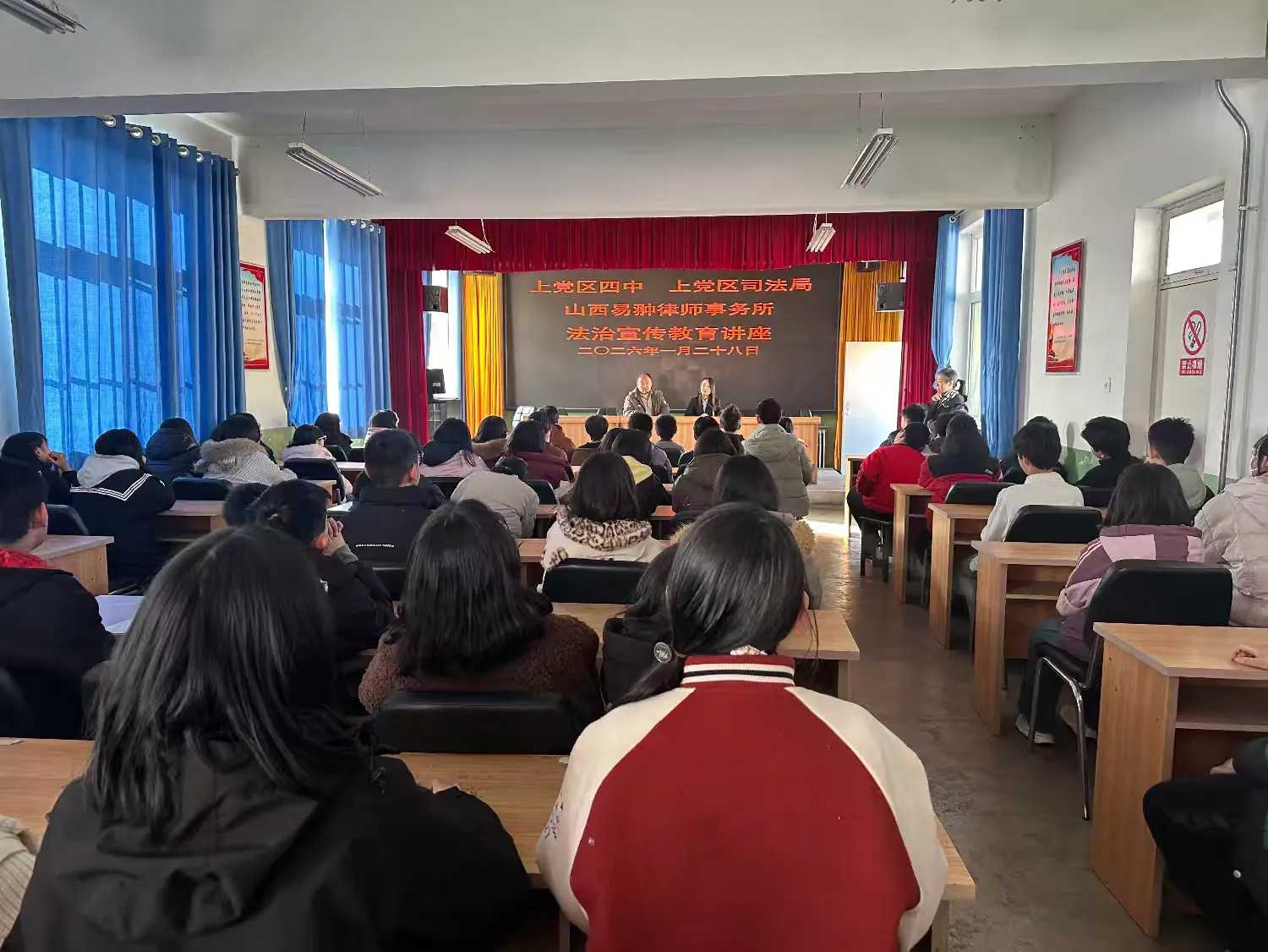 为进一步加强青少年法治教育,增强学生法律意识与自我保护能力,有效防范寒假期间未成年人违法犯罪风险,1月28日,区司法局组织普法讲师团成员、法治副校长走进上党区第四中学,以“预防未成年人犯罪”为题,为师生带来一场生动深刻的法治宣传讲座。