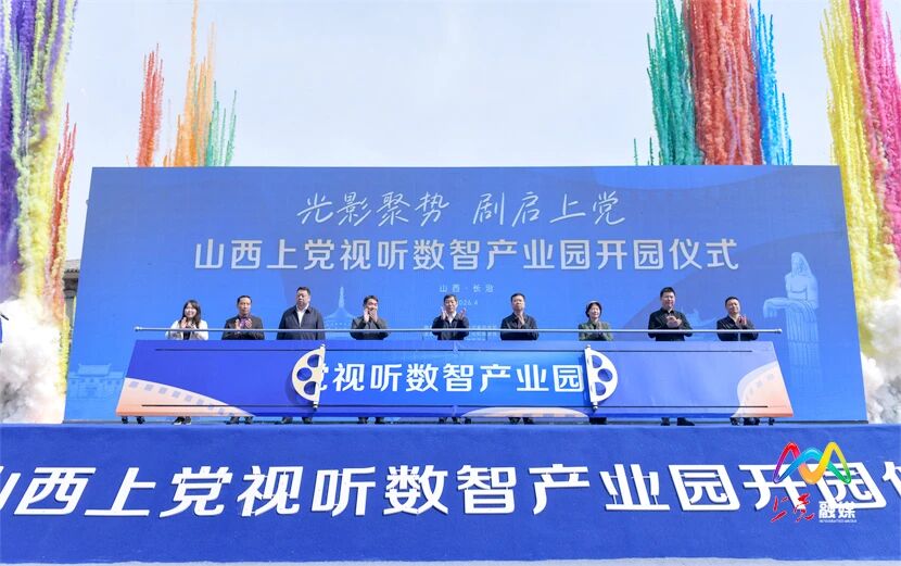 仪式上,山西上党视听数智产业园负责人分享了园区发展动态,产业园与芒果TV、百度漫剧项目合作揭牌,并与中国职工文体协会、长治医学院、长治学院、长治职业技术学院、长治技师学院、河南产教融合教育科技有限公司签订合作框架协议,与太行文旅集团、上党文旅集团、振兴小镇、荫城古镇、八泉峡共同签约“长治市全域影城联盟计划”。产业园20部短剧、漫剧举行了开机仪式,随后与会人员共同参观园区。